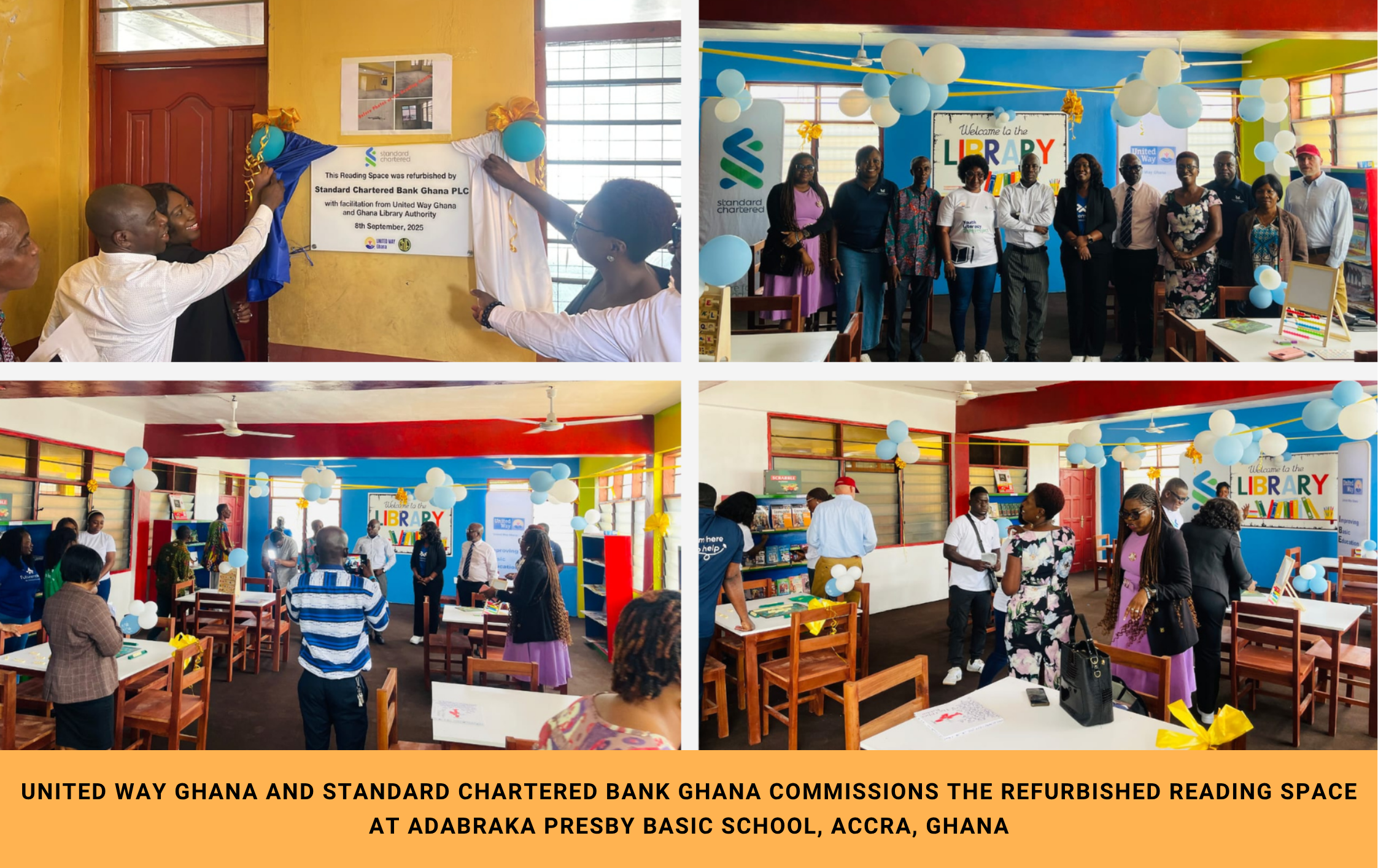 In commemoration of International Literacy Day, United Way Ghana and Standard Chartered Bank Ghana proudly commissioned the newly refurbished Reading Space at Adabraka Presby Basic School, a project funded through the generous support of Standard Chartered Bank Ghana.